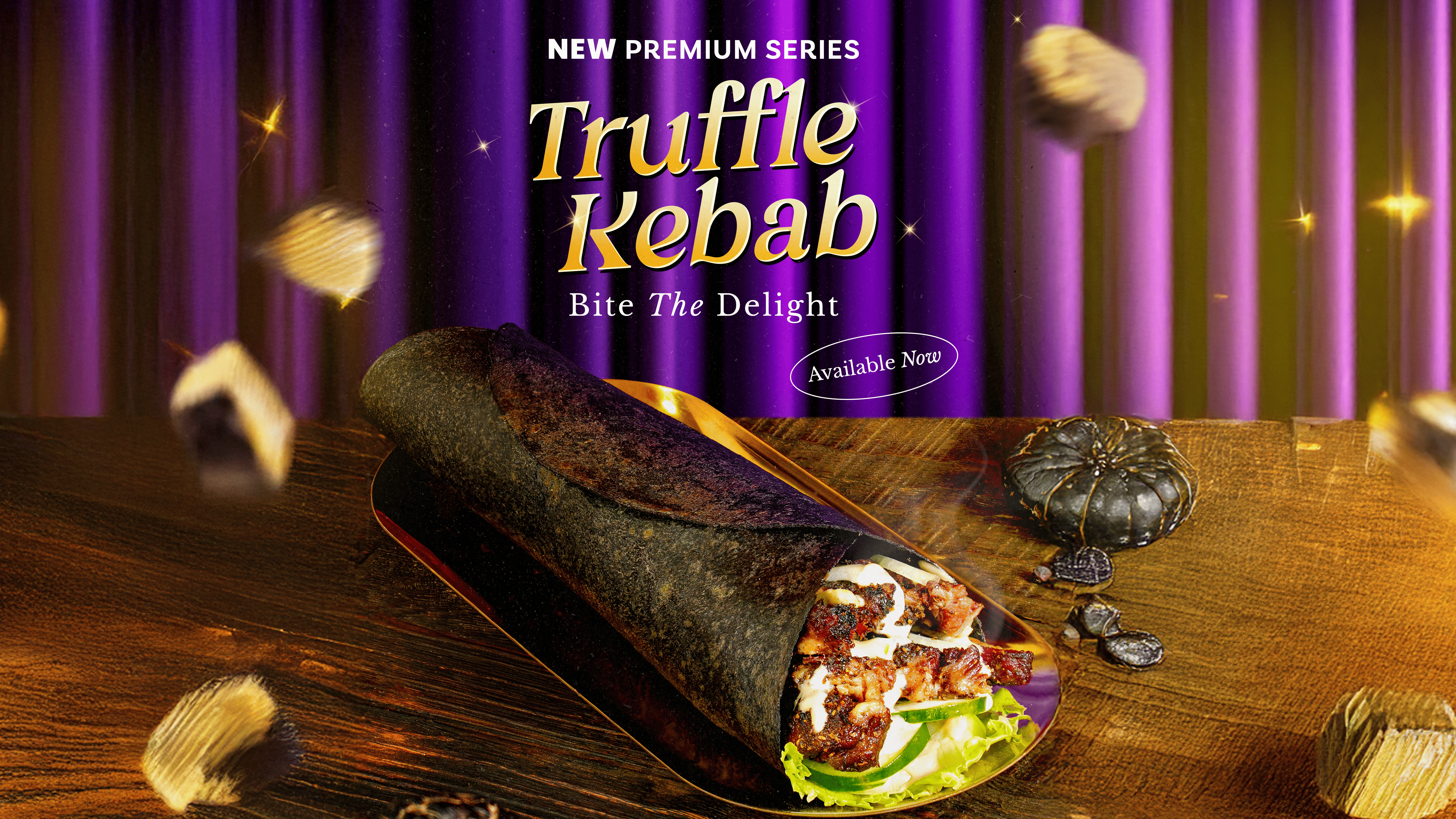 The Truffle Kebab is no ordinary wrap. This premium kebab is perfectly crafted, blending high-quality ingredients to deliver an extraordinary flavor profile. The combination starts with authentic and juicy smoked beef (daging sapi asap asli). This delight is perfected by the signature sauce: the Creamy Truffle Cheese Sauce, a rich and creamy cheese sauce with a luxurious truffle aroma, which has been tailored to suit Indonesian palates. The kebab is wrapped using a Special Black Tortilla that provides an exclusive visual and textural touch.